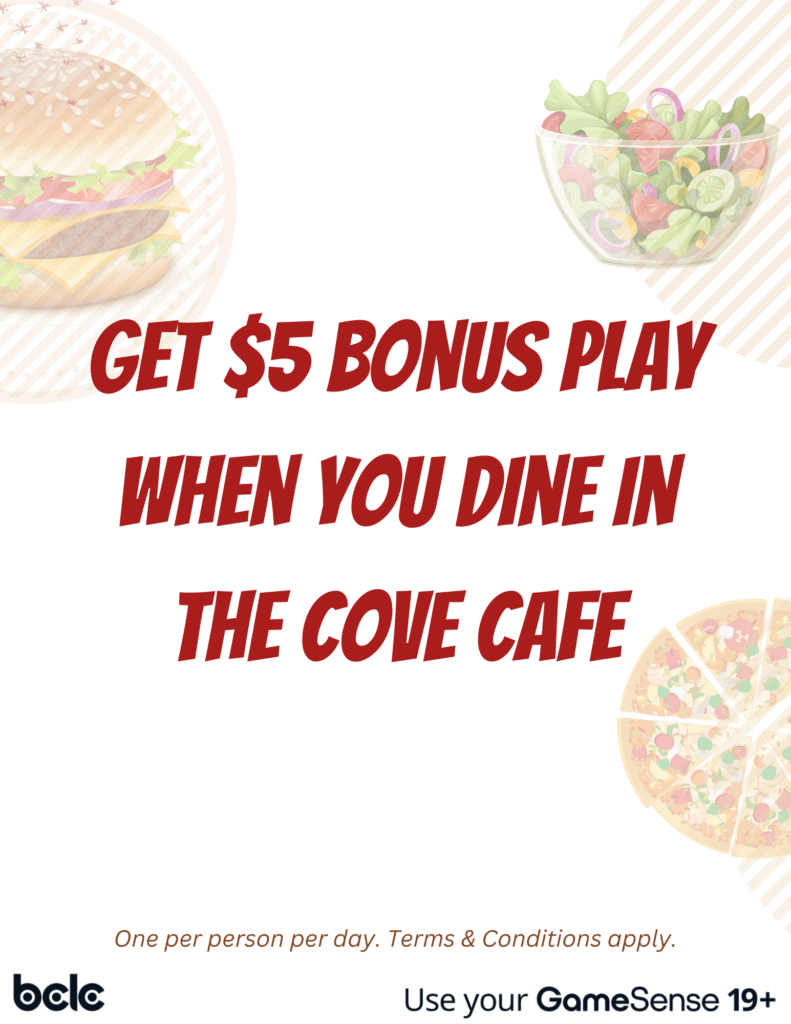 Dine in the Cafe and receive a $5 bonus play. Must be an Encore Rewards member.